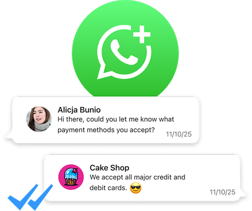 Add your WhatsApp Business contact information to your website using a QR code or clickable link, so customers can reach you in seconds.